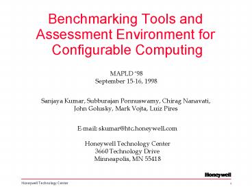 Title: Benchmarking Tools and Assessment Environment for Configurable Computing