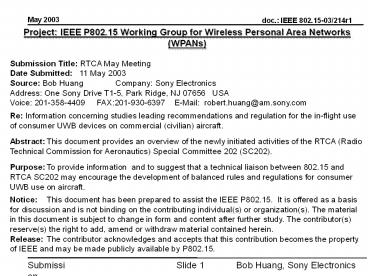 <Notice: Removed> IEEE 802.15 <RTCA May Meeting> PowerPoint PPT Presentation
