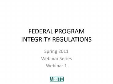 1FEDERAL PROGRAM INTEGRITY REGULATIONS