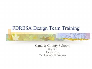 Title: FDRESA Design Team Training