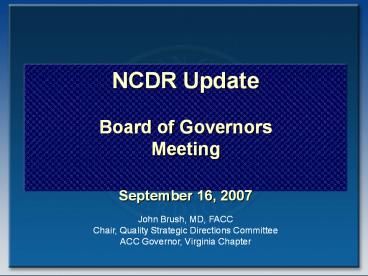 Title: NCDR Update