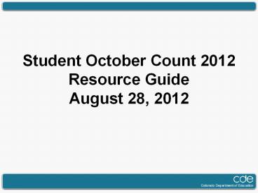 <Notice: Removed> Student October Count 2012 Resource Guide August 28, 2012 PowerPoint PPT Presentation