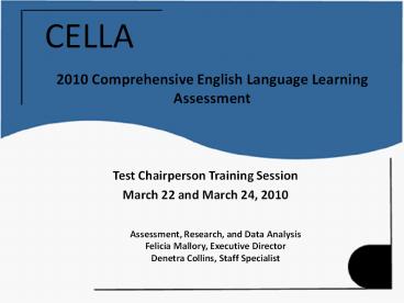 <Notice: Removed> CELLA PowerPoint PPT Presentation