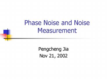 Phase Noise and Noise Measurement PowerPoint PPT Presentation