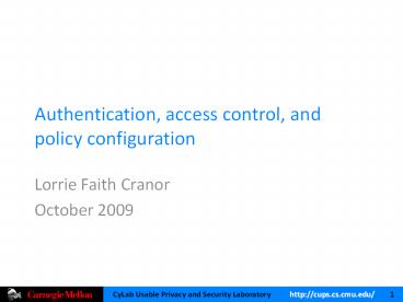 Authentication, access control, and policy configuration Lorrie Faith Cranor October 2009 * In XP, group membership information is in a completely different ... – PowerPoint PPT presentation