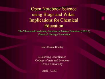 <Notice: Removed> Open Notebook Science PowerPoint PPT Presentation