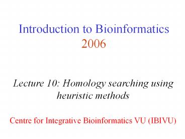 Title: Introduction to Bioinformatics 2006