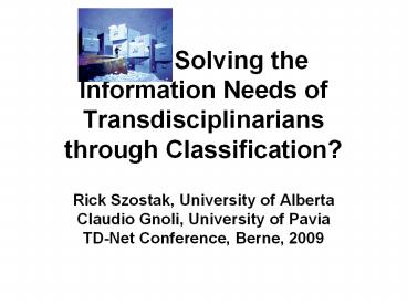 Solving the Information Needs of Transdisciplinarians through Classification? PowerPoint PPT Presentation