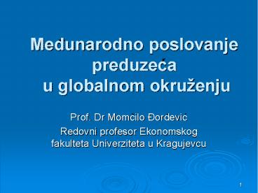 Title: Medunarodno poslovanje preduzeca u globalnom okru