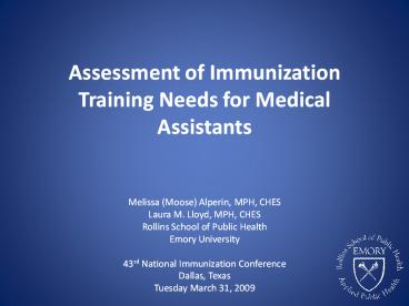 Title: Assessment of Immunization Training Needs for Medical Assistants