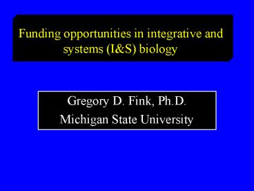Title: Funding opportunities in integrative and systems (I