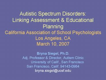 <Notice: Removed> Autistic Spectrum Disorders: Linking Assessment PowerPoint PPT Presentation