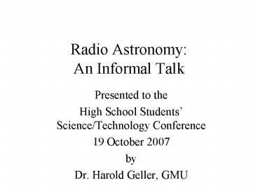 Title: Radio Astronomy: An Informal Talk