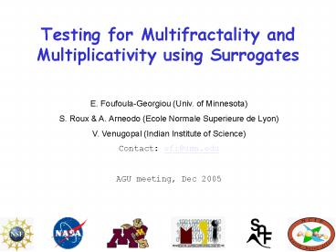 Testing for Multifractality and Multiplicativity using Surrogates PowerPoint PPT Presentation