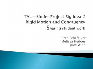 TAL Binder Project Big Idea 2 Rigid Motion and