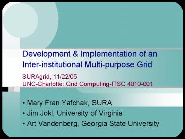 - About SURAgrid - Mary Fran Yafchak