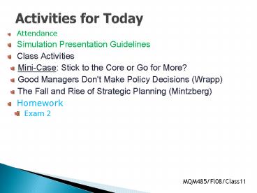 <Notice: Removed> Activities for Today PowerPoint PPT Presentation