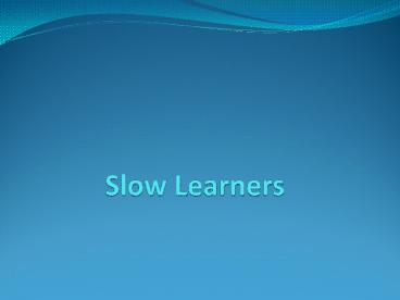 <Notice: Removed> Slow Learners PowerPoint PPT Presentation