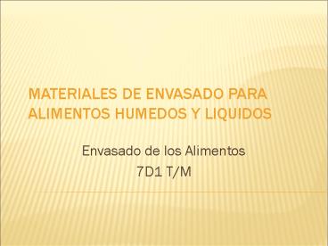 MATERIALES DE ENVASADO PARA ALIMENTOS HUMEDOS Y LIQUIDOS PowerPoint PPT Presentation