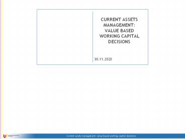 CURRENT ASSETS MANAGEMENT: VALUE BASED WORKING CAPITAL DECISIONS PowerPoint PPT Presentation