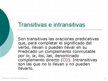 complemento directo (CD). Intransitivas son las