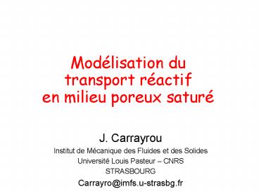 1Modélisation du transport réactif en milieu