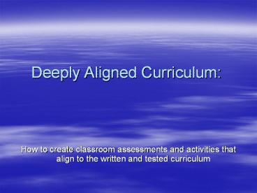 <Notice: Removed> Deeply Aligned Curriculum: PowerPoint PPT Presentation