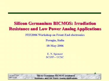 1Silicon Germanium BICMOS Irradiation Resistance