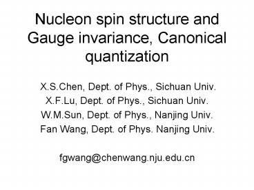 Title: Nucleon spin structure and Gauge invariance, Canonical quantization