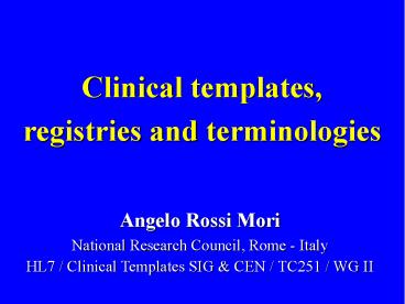 - HL7 / Clinical Templates SIG CEN / TC251 / WG II
