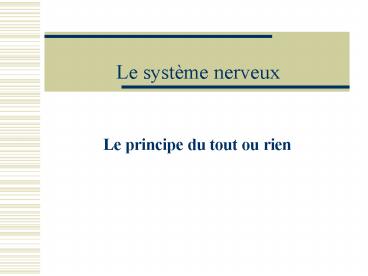Le système nerveux
