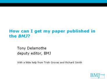 <Notice: Removed> How can I get my paper published in the BMJ? PowerPoint PPT Presentation