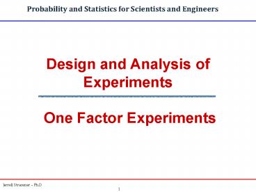 <Notice: Removed> Design and Analysis of Experiments One Factor Experiments PowerPoint PPT Presentation