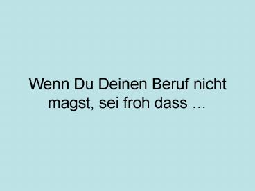Wenn Du Deinen Beruf nicht magst, sei froh dass PowerPoint PPT Presentation