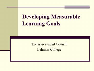 <Notice: Removed> Developing Measurable Learning Goals PowerPoint PPT Presentation