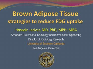 Title: Brown Adipose Tissue strategies to reduce FDG uptake
