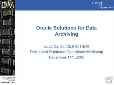 Oracle Solutions for Data Archiving Luca Canali, CERN/IT-DM Distributed Database Operations Workshop November 11th, 2008 Q&A Thank you Q&A Thank you Data life cycle ... – PowerPoint PPT presentation