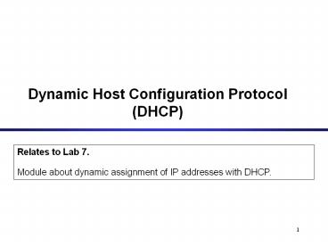 Title: Dynamic Host Configuration Protocol (DHCP)