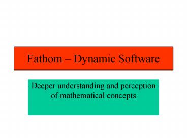 Fathom Dynamic Software Deeper understanding and perception of mathematical concepts What you can do with Fathom Drag the data Drag and drop to build new graphs ... – PowerPoint PPT presentation