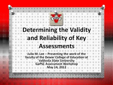 <Notice: Removed> Determining the Validity and Reliability of Key Assessments PowerPoint PPT Presentation