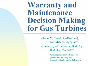 Title: Warranty and Maintenance Decision Making for Gas Turbines