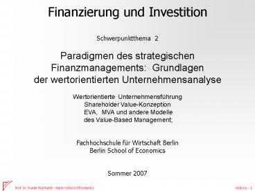 8SHAREHOLDER VALUE (S.V.) - Konzept -