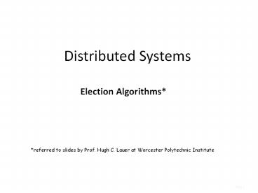 Distributed Systems Election Algorithms* *referred to s by Prof. Hugh C. Lauer at Worcester Polytechnic Institute Election Algorithms If we are using one process ... – PowerPoint PPT presentation
