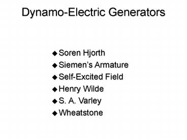 <Notice: Removed> Dynamo-Electric Generators PowerPoint PPT Presentation