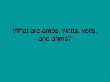 What are amps, watts, volts, and ohms? PowerPoint PPT Presentation