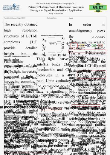 1SFB Molekulare Bioenergetik -Teilprojekt P27