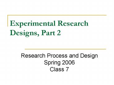 Title: Experimental Research Designs, Part 2
