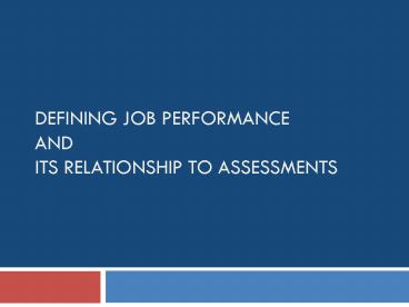 <Notice: Removed> Defining Job Performance and its Relationship to Assessments PowerPoint PPT Presentation