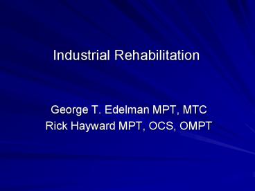<Notice: Removed> Industrial Rehabilitation PowerPoint PPT Presentation