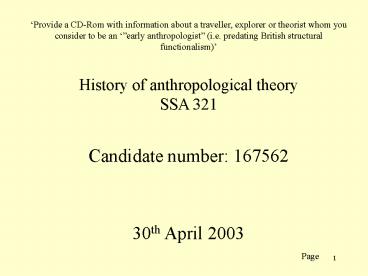 to be an early anthropologist (i.e. predating
